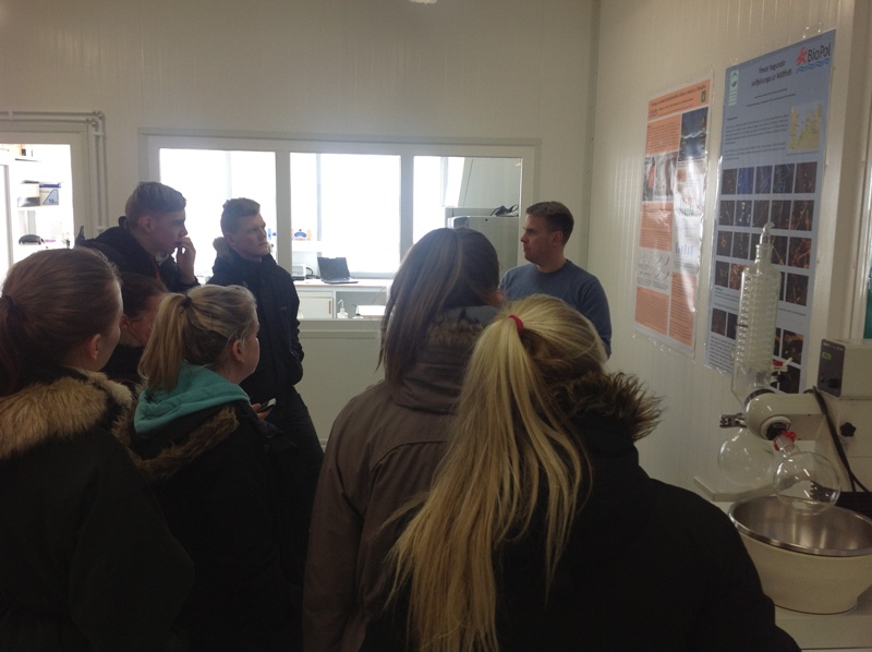 Í gær miðvikudaginn 26. febrúar fékk starfsfólk BioPol til sín góða gesti úr Fjölbrautarskóla Norðurlands Vestra. Um var að ræða 35 nemendur sem á opnum dögum völdu að ferðast um sitt heimahérað og heimsækja fyrirtæki og stofnanir. Nemendurnir fengu almenna kynningu á starfsemi BioPol ehf á Skagaströnd og fengu síðan tækifæri til þess að ganga um skoða ýmislegt áhugavert á rannsóknastofu félagsins. Við hjá BioPol erum afar þakklát yfir að fá svona áhugasama gesti í heimsókn og teljum mjög mikilvægt fyrir fyrirtækið að fá tækifæri til að kynna starfsemi sína fyrir svona ungu og frambærilegu fólki.