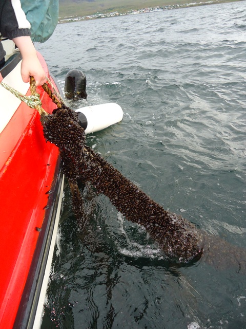 Línurnar voru settar út í lok júlí 2010 og á þeim tíma hefur vaxið á þeim mikið af skel, þær stærstu á bilinu 3-4 cm, sem þykir mjög gott. Næstu skref í ræktunarferlinu er að hreinsa skelina af línunum, stærðarflokka og koma skeljum í svokallaða ræktunarsokka. Með því næst hámarks nýting og afföll verða minni.