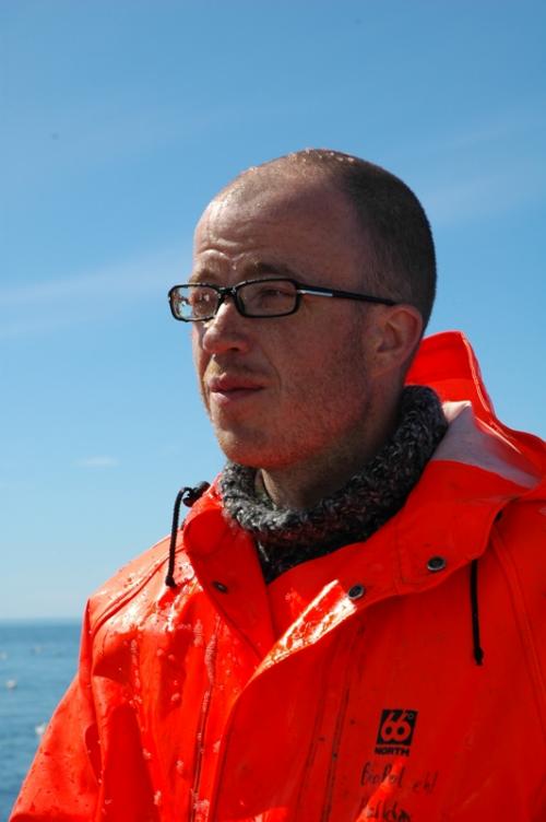 Bjarni starfsmaður BioPol eftir að hafa fengið hressilega slettu af hrognum í smettið. Breiðafjörður 2009
